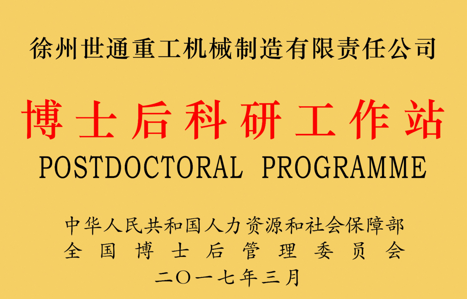 2017年3月,全國博士后管委會辦公室發(fā)布了關(guān)于批準(zhǔn)增設(shè)博士后科研工作站分站的通知(博管辦〔2017〕24號)。世通重工被批準(zhǔn)在江蘇省徐州市經(jīng)濟(jì)技術(shù)開發(fā)區(qū)設(shè)立博士后科研工作站分站。我司是2016年至今徐州經(jīng)濟(jì)技術(shù)開發(fā)區(qū)唯一獲批的博士后科研工作站。