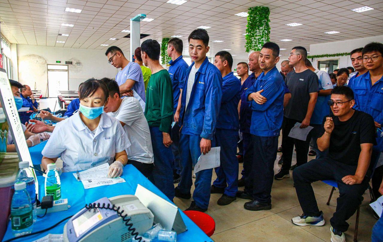 “現(xiàn)在生產(chǎn)任務(wù)忙,我們一線生產(chǎn)工人能按期接受體檢,自己也放心,非常感激公司?!痹跈z查現(xiàn)場,員工們有序排隊,檢查項目根據(jù)工種不同、接害因素不同,涉及視力、內(nèi)外科、血常規(guī)、心電圖、胸片等20余項。為保障好此次體檢順利進行,生產(chǎn)制造部及時溝通體檢相關(guān)事項和流程,管理部協(xié)調(diào)安排體檢場所,為每位員工提供愛心早餐。