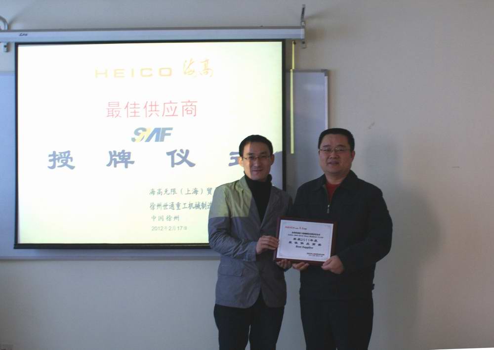 2012年2月17日,公司舉行最佳供應商授牌儀式,海高無限(上海)貿(mào)易有限公司授予我公司2011年度最佳供應商稱號,公司總經(jīng)理及海高公司代表等參加本次儀式。